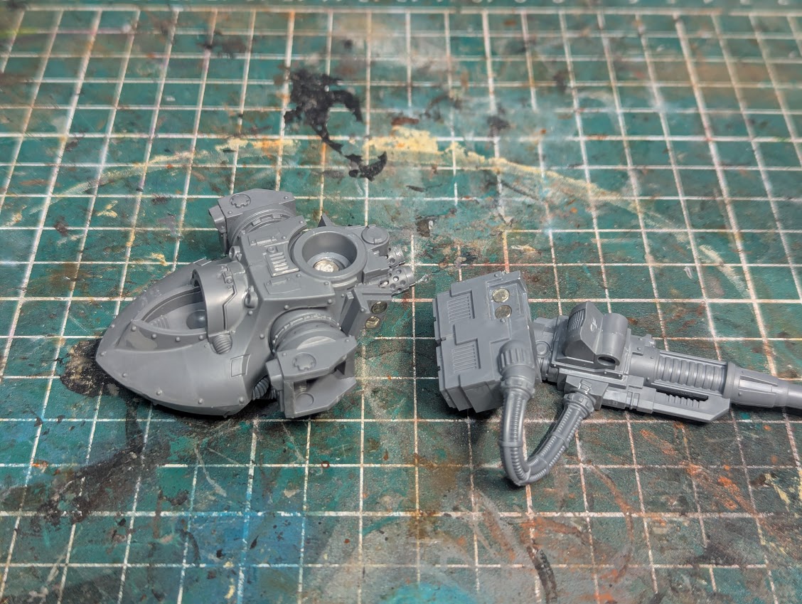 One aspect of this kit which deserves praise is inclusion of inset holes to mount magnets for easy weapon swaps. Coming from Adeptus Titanicus, I am a magnet pervert and am grateful for the inclusion of these. As you can see below, holes are present on the top carapace mount, the torso guns, and on the backpack and shoulder for the arms.