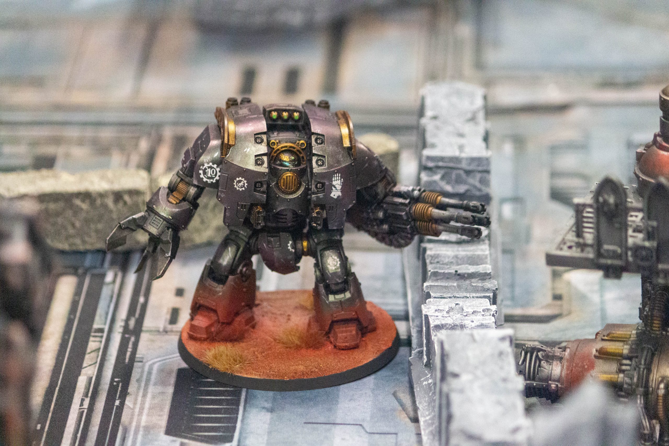 An Iron Hands dreadnought holds the line in the Necropolis during the Battle of Marinus.