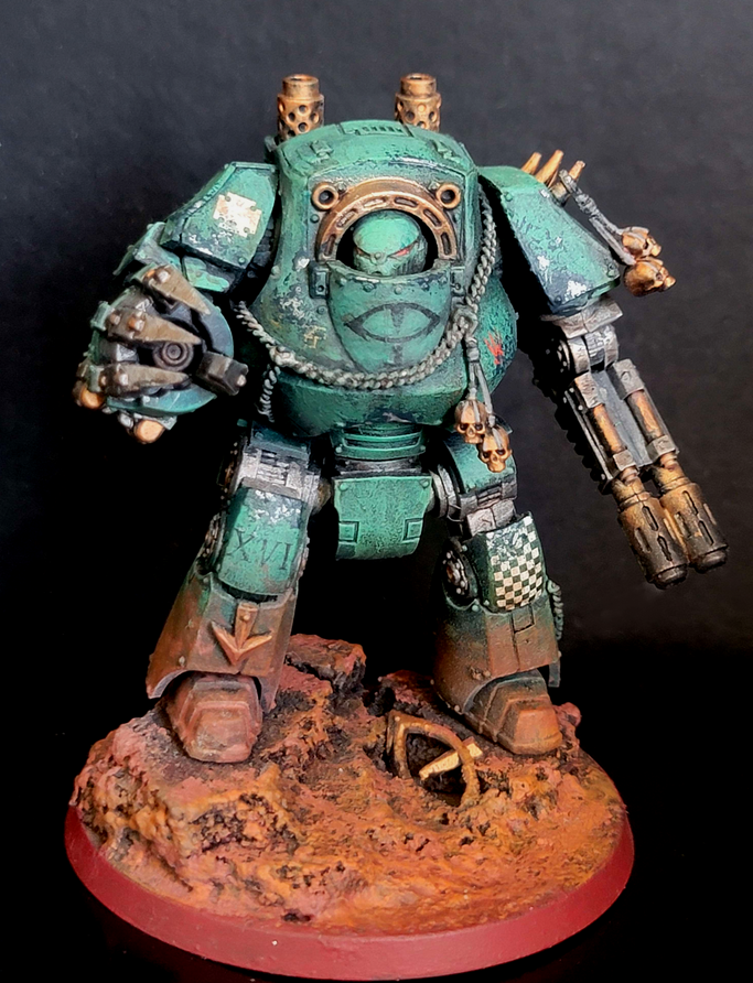 How I went about creating this list was that I wanted to focus on the Dreadnoughts leading veterans and warriors of darker inclinations. Our warlord, Ancient Dhantas, is given a vicious loadout which makes him a melee beast. I really wanted to carry the energy of decades serving with the sons of Cthonia, so I would go about by focusing on melee with Despoilers, melee Veterans, and the legion specific terminators: the Deliverers. Destroyers round up to help carry the dark history of the force with their rad weaponry. I filled out my compulsory troops slots with Dreadnoughts with anti-infantry loadouts. I then wrapped it up with some anti-tank with a full squadron of Laser Destroyer Vindicators, and a single Dreadnought Deredeo Talon to just get another coffin crammed into the list.