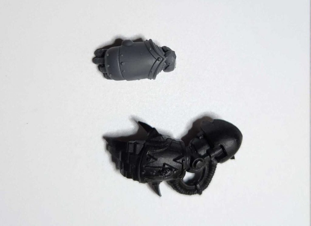did not like about this kit, it's the weirdly small power fists. The first thing I did with this new kit was replace the power fist with a Chaos Marine Terminator fist from one of the older 2005 kits I had lying around. The good news is, the sizes here all line up and this was an incredibly easy kitbash - no greenstuff required.