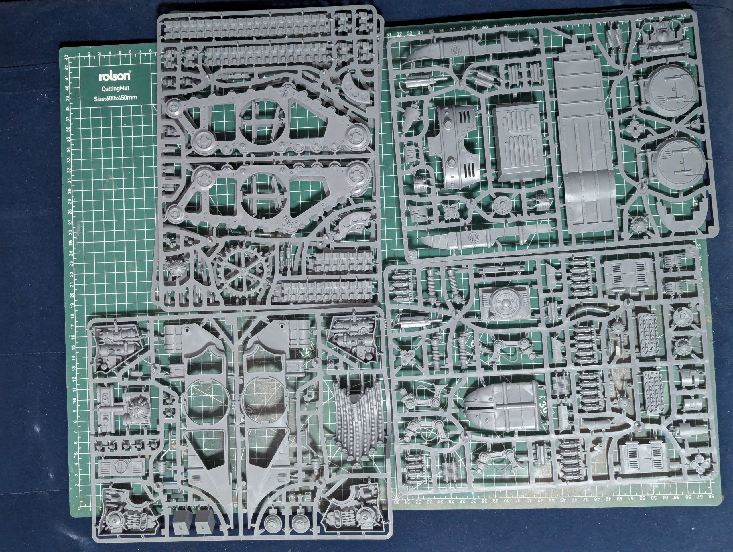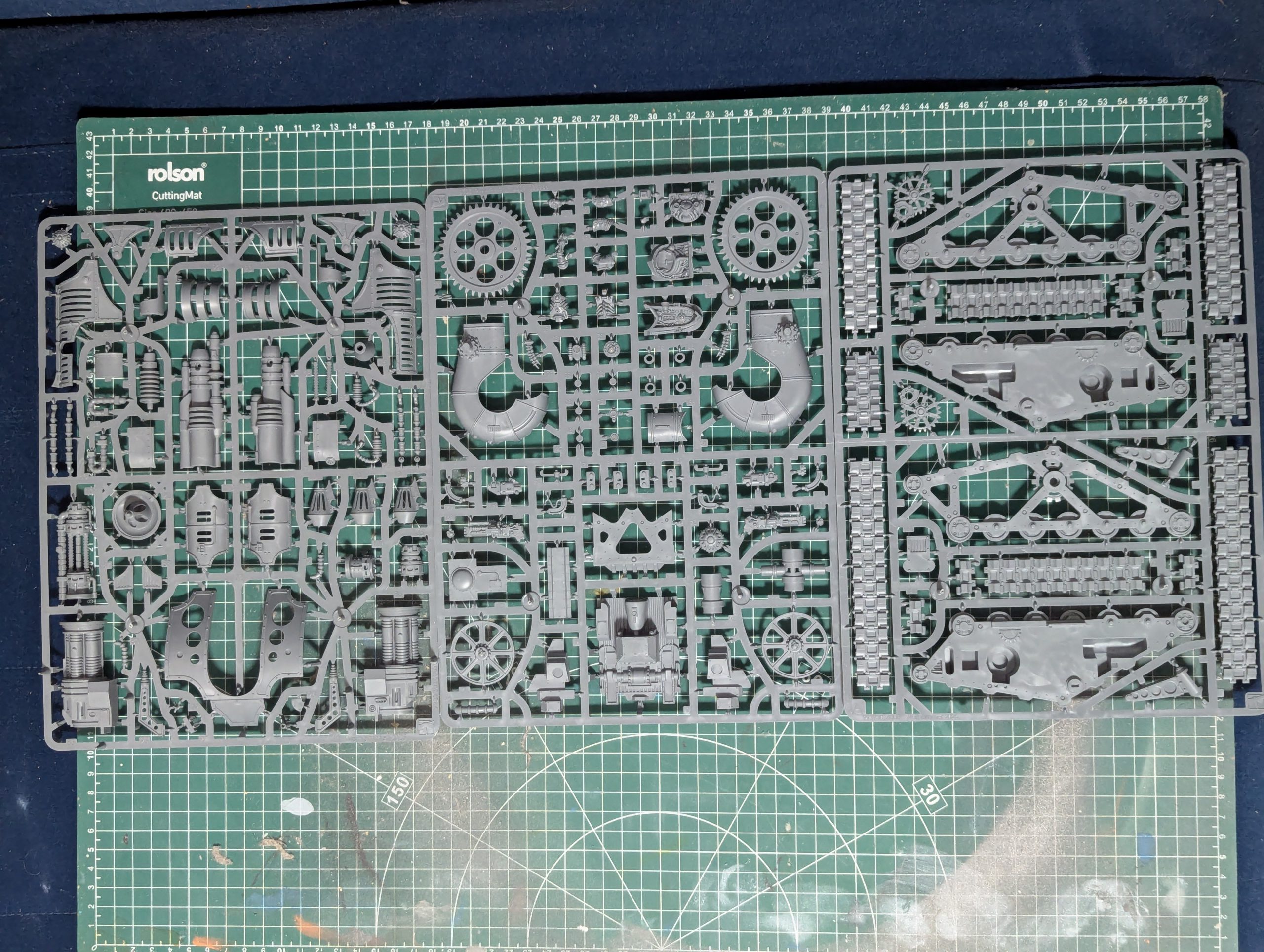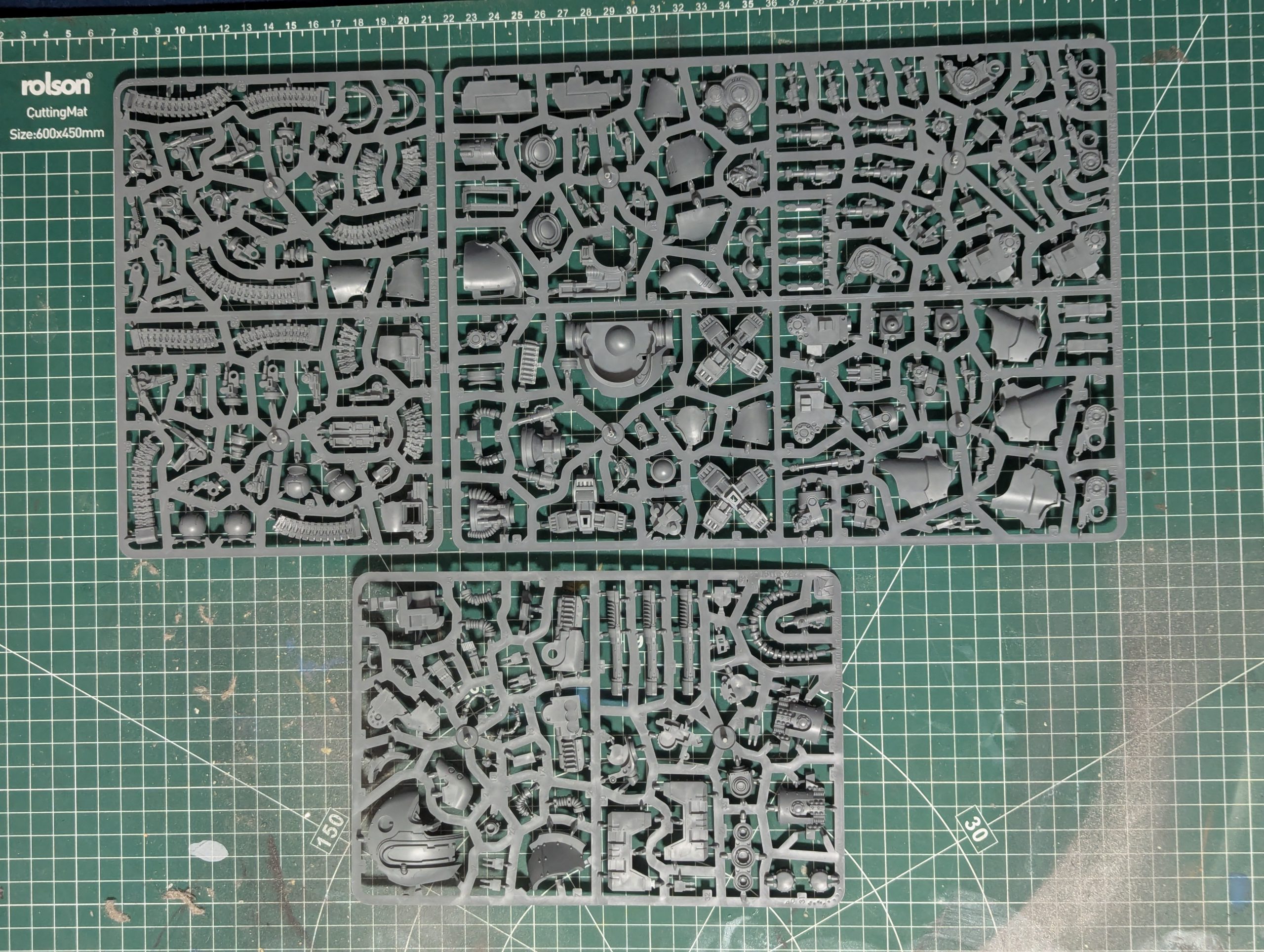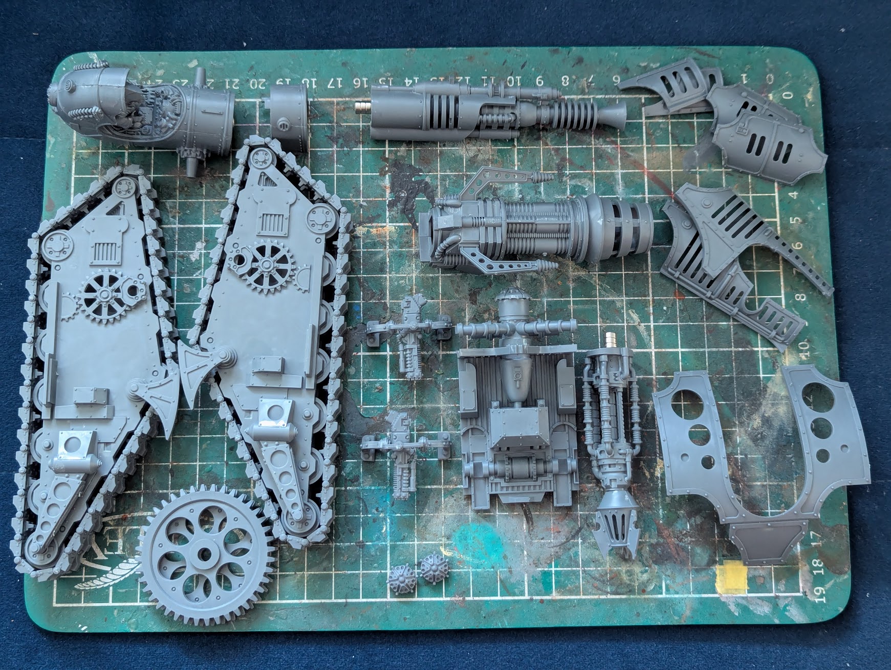 realSnice: The frames that come together to create the two track assemblies leave a painter with a decision to keep them separate to easily paint the inside, in my approach i maintained my base color on the inside and outside of the combined parts but the classic Mechanicum scheme of having a metallic interior makes it difficult to reach some of the inner details if you glue them together before painting. I was heavily inspired by @meddersminiatures and his desaturated green scheme and I look forward to applying this to a full army in 2025.