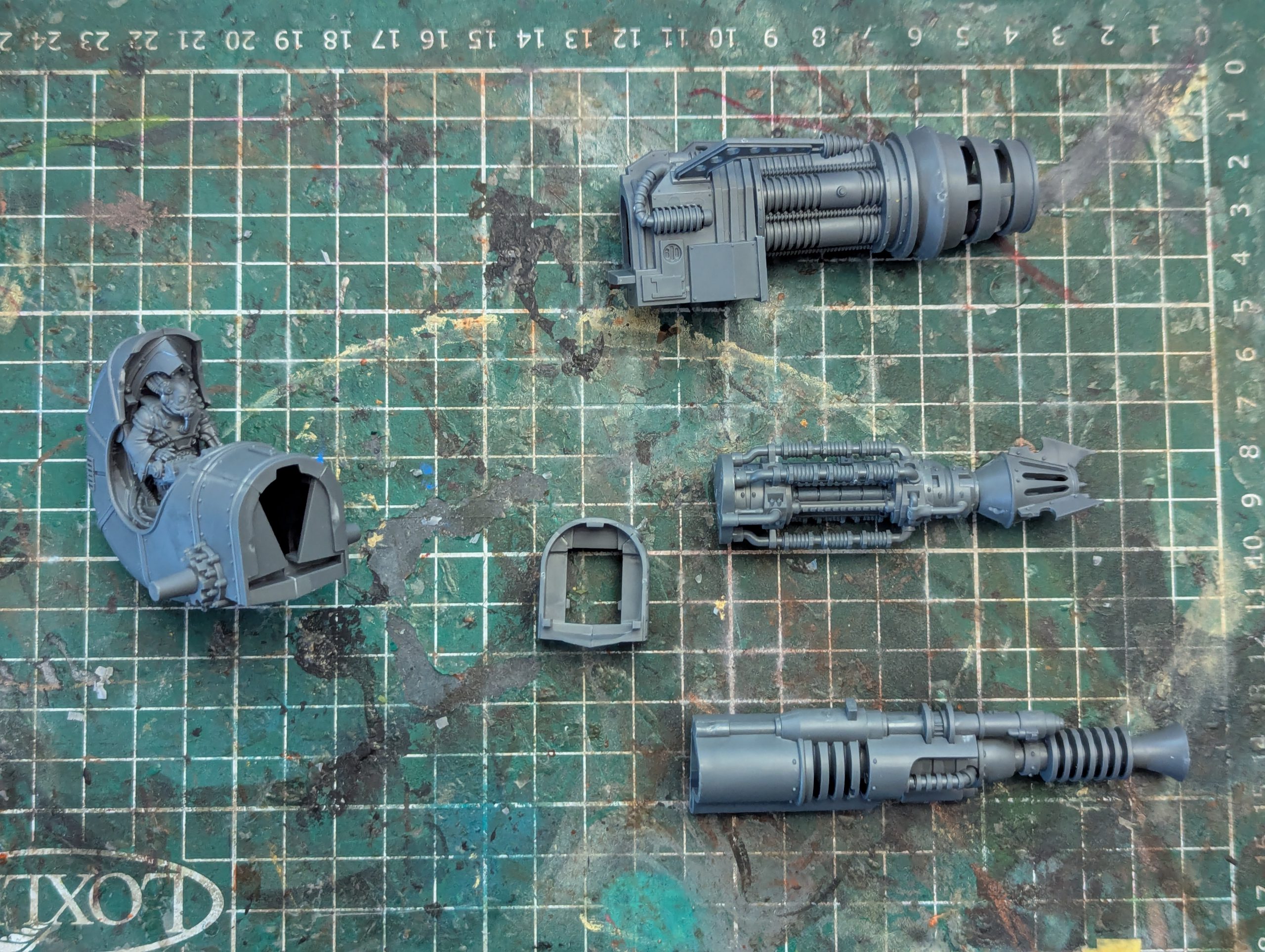 For ease of painting, I opted for several sub-assemblies - leaving the tracks off and opting to glue everything at the end. As otherwise, trying to hit the underside of the pilot compartment would have been incredibly awkward.