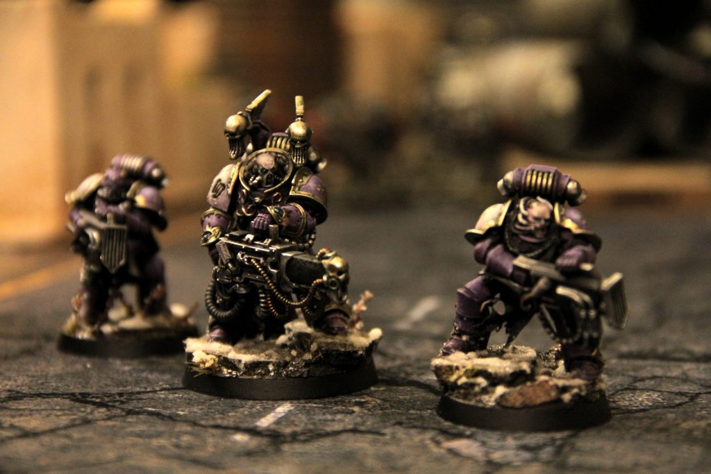 Litanies of Death takes this idea, but goes a bit further, trying to make small Heresy feel more like a modern skirmish game by adopting an alternating activation turn structure (I move one of my units, you move one of yours, until the movement phase is done, then I shoot one of mine etc etc). You lose reactions but as the turn structure is already dynamic enough I don’t think you feel their absence; your next activation effectively replaces any reaction. Personally, I really think that alternating activations plays a bit better at this scale but both rulesets play really well.