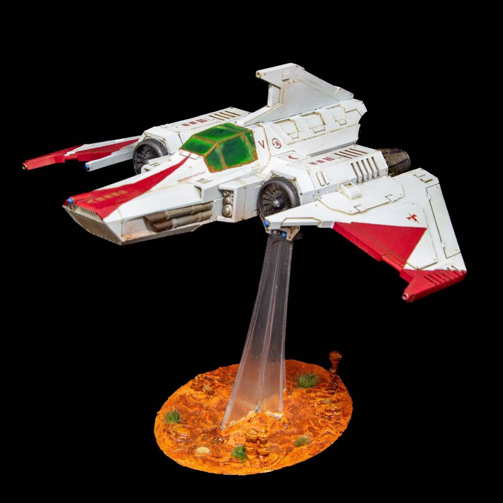 An anti-infantry craft with a five shot AP3 Avenger Boltt Cannon, a twin lascannon and a cheeky rear heavy stubber it will never get to fire. At 100pts, I really like the Avenger Strike Fighter and I don’t know why. It’s quite good at hunting elite power armour infantry, but only once dangerous Interceptors have been cleared out.