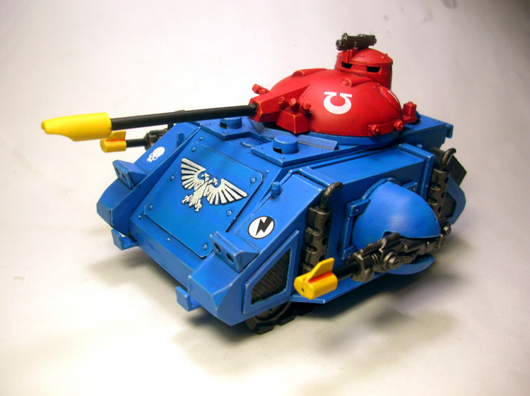 The Predator is probably the iconic Legion tank. This 12” move Armour 13/12/10 tank comes with a Predator cannon and Heavy bolter sponsons for 100 points. It can be equipped with weapons for pretty much any purpose, from a dedicated tank hunter to inflicting a variety of different gruesome deaths to infantry. It will lose a lot of effectiveness from its Heavy weapons if it moves, especially against other vehicles.