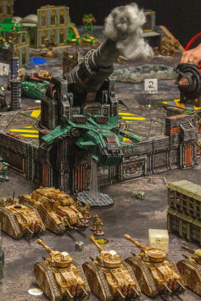 In the adjacent warzone, a Triaros with the initialisation Delta-Phi-110100100 trundled into its warzone behind a cloud of radiation, pushing its way through a dozen tanks from both the Fists and the Spartan, claiming a fierce victory for the Mechanicum against their foes. In this action, it earned the name "Sacred Locomotion."