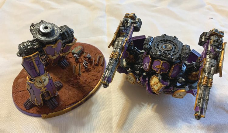 This Adeptus Titanicus Warlord has a pair of magnets at the waist so it can be taken apart for storage and transport. The arm and weapons are also magnetized for maximum indecisiveness.