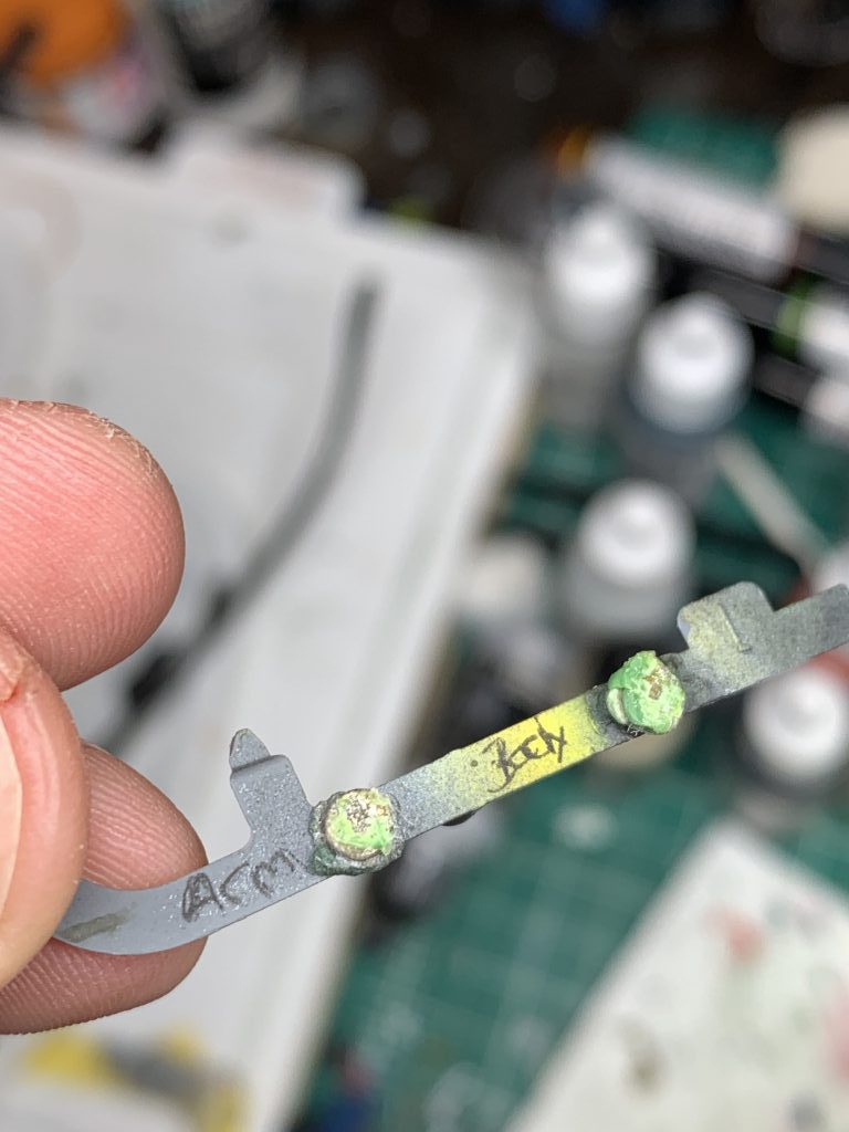 Sometimes though even a permanent marker rubs off. I don’t know why, maybe the metal is too slick or maybe magnetic ions repel Sharpie particles, get off my back Mom, I just know sometimes it happens. But even in this case, all hope is not yet lost. Take one of your magnets, preferably a larger one, and glue it to the top of your hobby toolkit or something. It doesn’t matter which side up you place it, what matters is now it is fixed with one polarity up. Any time you need to put magnets into something, attach both of them them to your fixed magnet. Put one on those magnets into one part right side up and the other into the matching part upside down. I’m embarrassed to say how many years I had been building models before I learned about this. You can go one step further than this, and make a magnet stick. Get an old piece of sprue or something similar and glue two magnets to it, with different polarities facing out. Now pick which polarity will be “the body” and which will be “the arm” and mark this on the sprue. This way every magnet you install from now on will be interchangeable.