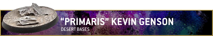 extremely easy to do and I think it looks great. To start I take the base and superglue on pieces of oyster shell. Oyster shell is a fantastic material because it has a ton of texture, scales well to 40K models, and is cheap. Once the shells are on the base is painted with a textured crackle paint like Games Workshop's Agrellan Earth before the model is primed in gray. My preference is to airbrush with Badger Stynylrez in gray, which is far easier to use than it is to spell. I then airbrush Vallejo Game Air Bonewhite and then apply a wash of Army Painter Strong Tone. Any brown will work but I prefer the Army Painter series of washes. I then drybrush with VGA Bonewhite (yes, the pre-thinned airbrush paint) which provides a very interest effect where the material is both tinted and the edges are raised up. I then finish up by drybrushing in white, either user the an airbrush paint for a bit of tinting or regular paint to bring out the edges. The rim is done in a 50/50 mix of Vallejo Black and Liquitex Ink! Carbon Black; the combination provides an extremely smooth coverage. Incidentally that recipe is nearly identical for how I do the bone; the only difference is that I use Army Painter Soft Tone for the wash. You can easily expand this technique and make it your own by adding additional flora such as grass clumps, or perhaps some alien plants in a very vivid color.