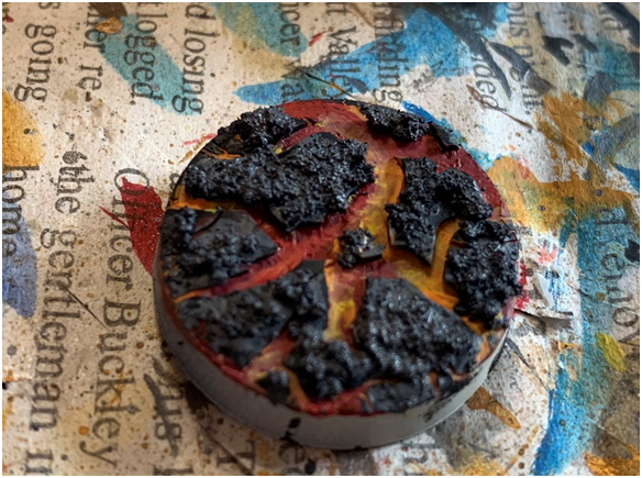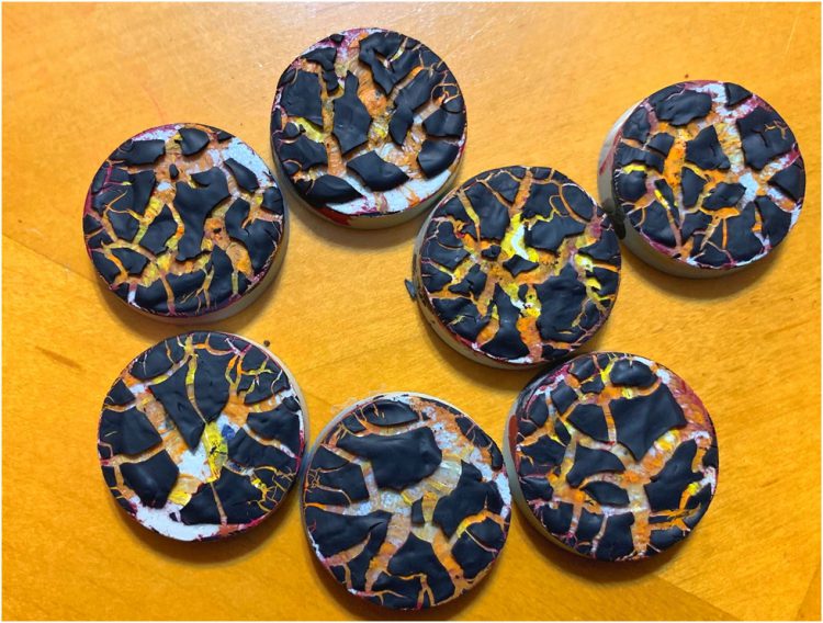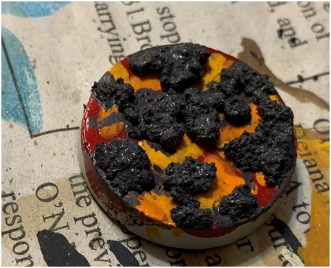I recently got it in my head to make some lava bases for a new army - cooled bits of stone over hot molten magma. While poking around the internet on how to make them look good I noted a recent(ish) Citadel Technical paint - Mordant Earth. But a test base had some strange results so I thought I’d document my experimentation with it and other methods for the benefit of you, gentle reader.