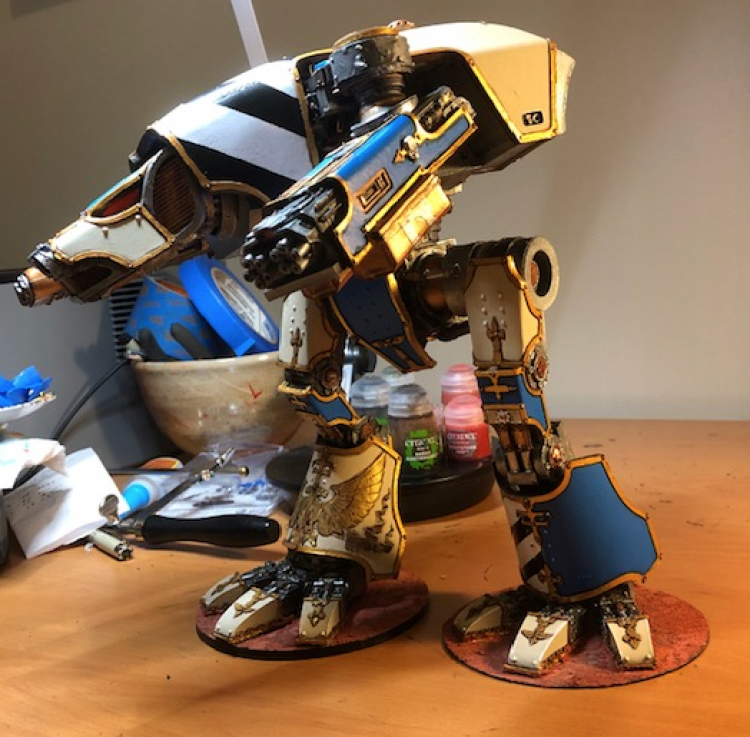 Greg Chiasson: As a Big Titan Warhound Appreciator, I've been debating posting this for a while. I wasn't sure how useful a post about a six hundred dollar resin model that takes ages to build and paint, and then melts into slag against half its points value on the tabletop would be, but people kept asking, so here we are. I won't lie to you: this thing is a serious commitment to build and paint, and it will take up a massive amount of space, but when you're done, it has a presence on the shelf that can't be matched. Except by other, larger, Titans.