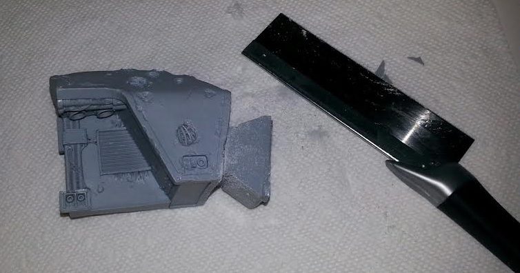 Greg: The other difference with resin compared to plastic (and especially metal) is that it is brittle as hell. You can probably see the ugly seam line on the top carapace of my Titan here, which is from jamming the thing on a little too hard, and snapping the side off. Resin isn't soft - it's harder than plastic, which is part of why it holds detail so sharply - but when it does give out, there's very little flex, and it just explodes. So, uh, be careful.