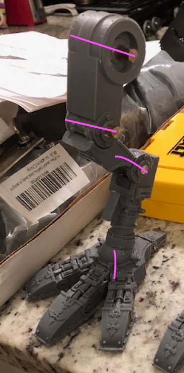 Greg: I'm a big proponent of making one tiny base for each foot, instead of one giant one. Your call, but if you do it this way, the 130mm bases from Onager Dunecrawlers are perfect for it. Or steal some blank CDs from work or whatever, they're almost exactly the right size.