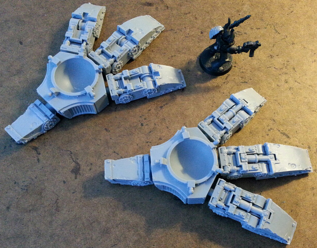 TheChirurgeon: Well, there's some flex. When resin heats up, it becomes very soft and bendy. Which is handy because usually at least one of the resin parts you get from Forge World is going to be warped. What I do for these is I heat a shallow bowl of water in the microwave for about a minute and a half, then I'll dip the resin parts in the hot water and slowly, carefully bend them into the shape I need. You'll have to do this for the cables and tubing for certain guns. hold them in the shape you want, then while holding them, run them under cold water to keep that shape.