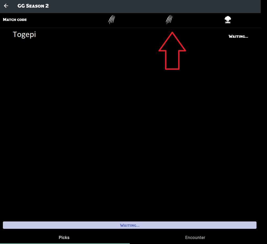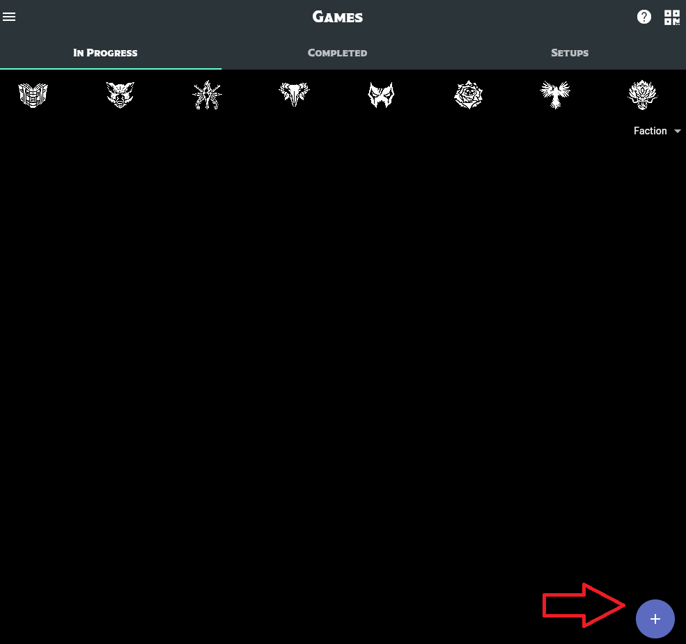 Once the game is created, you can press one more button to generate a code. This is a 3- or 4-symbol code using Malifaux symbols: melee, projectile, blast, shockwave, pulse, the four suits, etc. This game's code is Melee, Melee, Blast. Anyone else on the app can use the code to join the game, which synchronizes you across devices. And you're done!