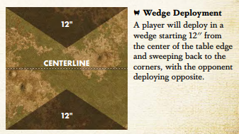 Notice that two of the deployment zones create a horizontal centerline (and division of table halves) and the other two create a diagonal one. Deployment zones radically alter how the Strategies and Schemes play!