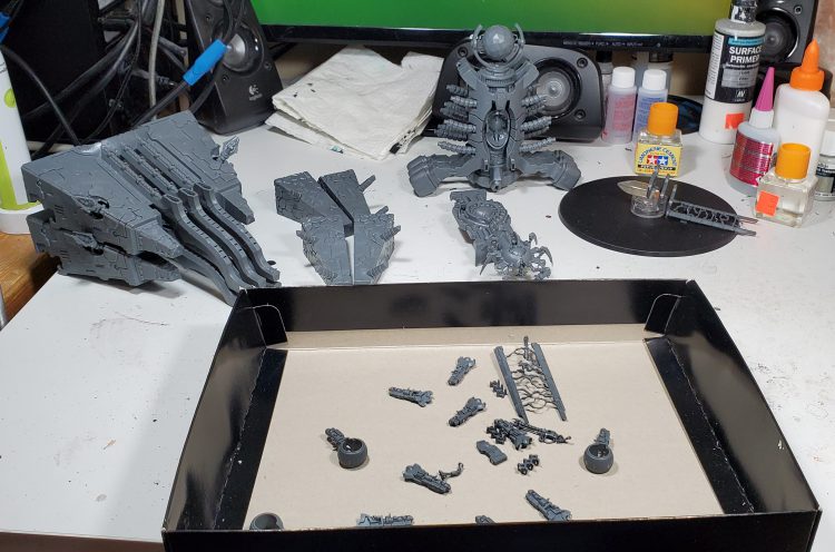 This thing is by far the largest model I have ever painted, even the Silent King's dais looks petite beside it! Speaking of the King, this model is far nicer to build in comparison and actually makes me curious what was happening in the background for the two. Both models make heavy use of duplicate sprues along with a unique sprue, but unlike the King far fewer complex pieces are multi part nightmares, instead they usually ended up on the unique sprue. The most awkward bit turned out to be the stairs that are connected with a small piece in between each level with a tiny contact patch for each end of a tiny arm, but that is a minor complaint.