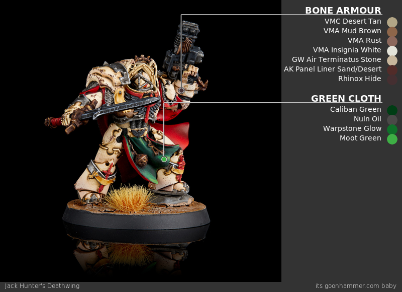 I don't normally play Dark Angels - my primary marine armies are Imperial Fists and Blood Angels - but I was incredibly excited when the chance to add to the Dark Angels came up as Forge World had just released two Dark Angel Praetors, one in power armor and one in terminator armor. We've pretty well covered painting green in our main Dark Angels article, so this gave me a perfect excuse to try out painting bone instead.