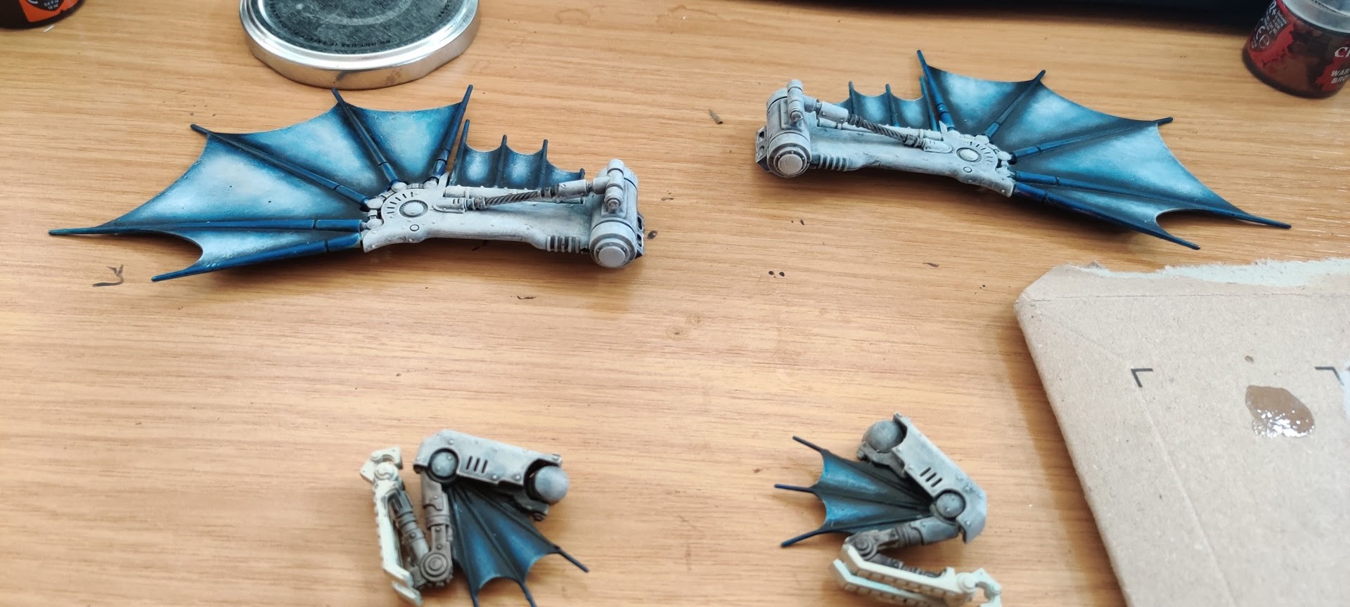 Craftworld Eldar for the sane reason. Yet another common feature with those other armies is that I am continuing to experiment with where I can cheat or otherwise speed up the painting process without losing quality to a degree that would offend me. To that end, this scheme has very few edge highlights and minimum number of different base coats, take a look at this Skorpius for example: