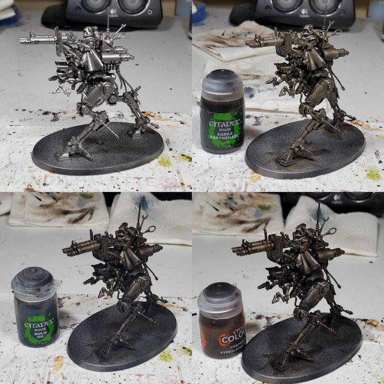 Agrax Earthshade further down the panels, but on something big like this don't be afraid to do as many as needed to get a semi smooth transition. For the