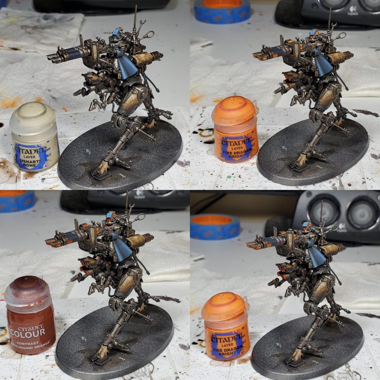 Fire Dragon Bright base coat, between the wash of contrast and the generally dirty colours of the scheme mistakes can go unnoticed.