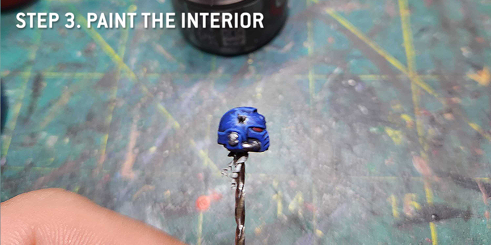 If you want the blow to have damaged the eye, simply glaze the white of the eye with Blood for the Blood God.