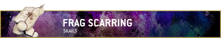 More normal scars are easy to achieve with freehand paint. Kislev Flesh (the lower scar) is good for older or less severe scars, while Administratum Grey (upper scars) works well for larger areas or evidence of more severe injury.
