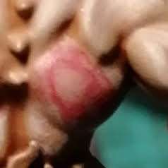 - Carefully shade around the cuts with Carroburg Crimson to represent inflammation.