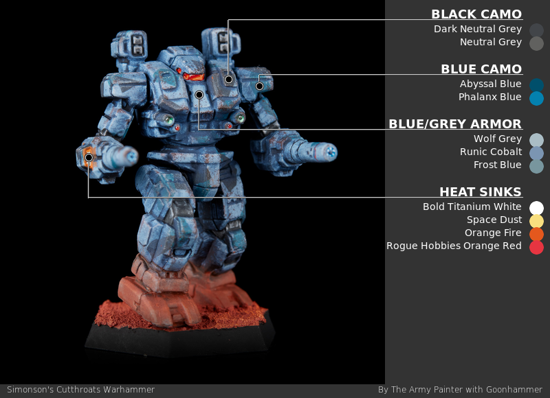 Their paint scheme is described as flat grey with black and blue highlights, though Force Manual Mercenaries depicts those as a camo pattern over a bluish grey base.