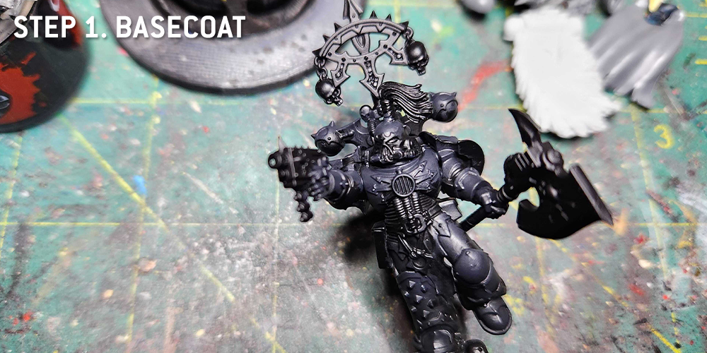 I’ll share my scheme and methodology for painting the Black Legion scheme with one of my favorite models in all of Warhammer: the Chaos Space Marine Terminator.
