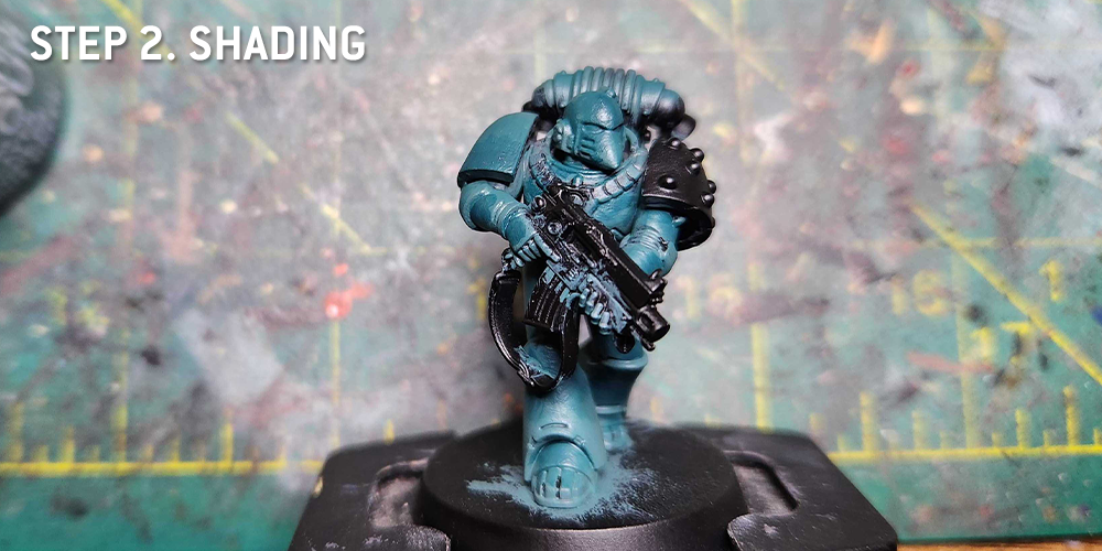 Macragge Blue. I shade using