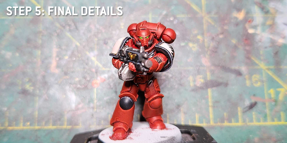 Just a few final details in this step, and it's lots of minor things. I do some final, corner edge highlights on the red with