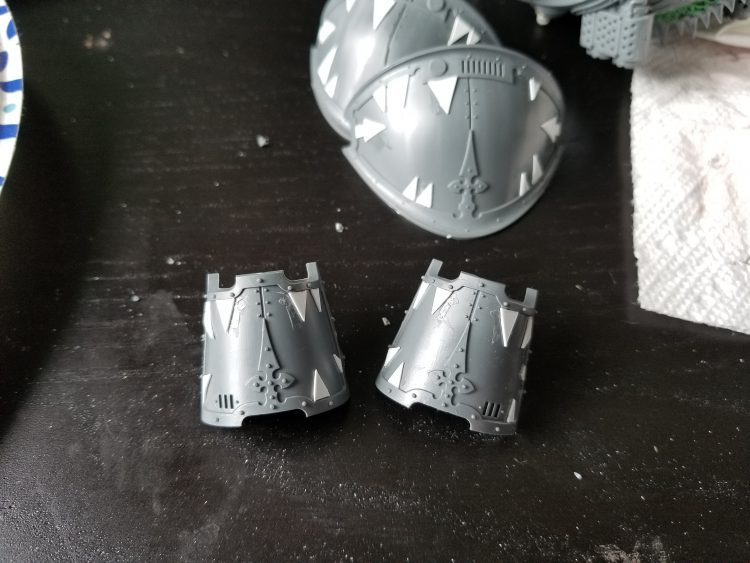 Painting shoulderpads before adding last layer of trim. Credit: WhiteOutMouse