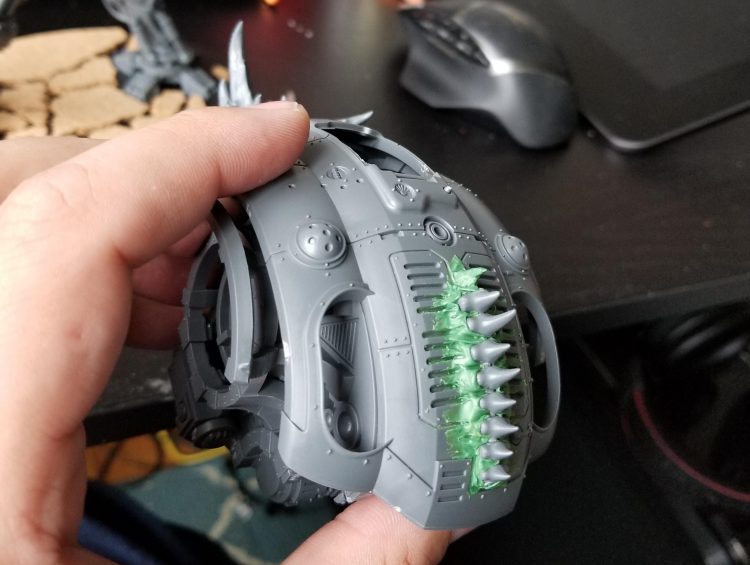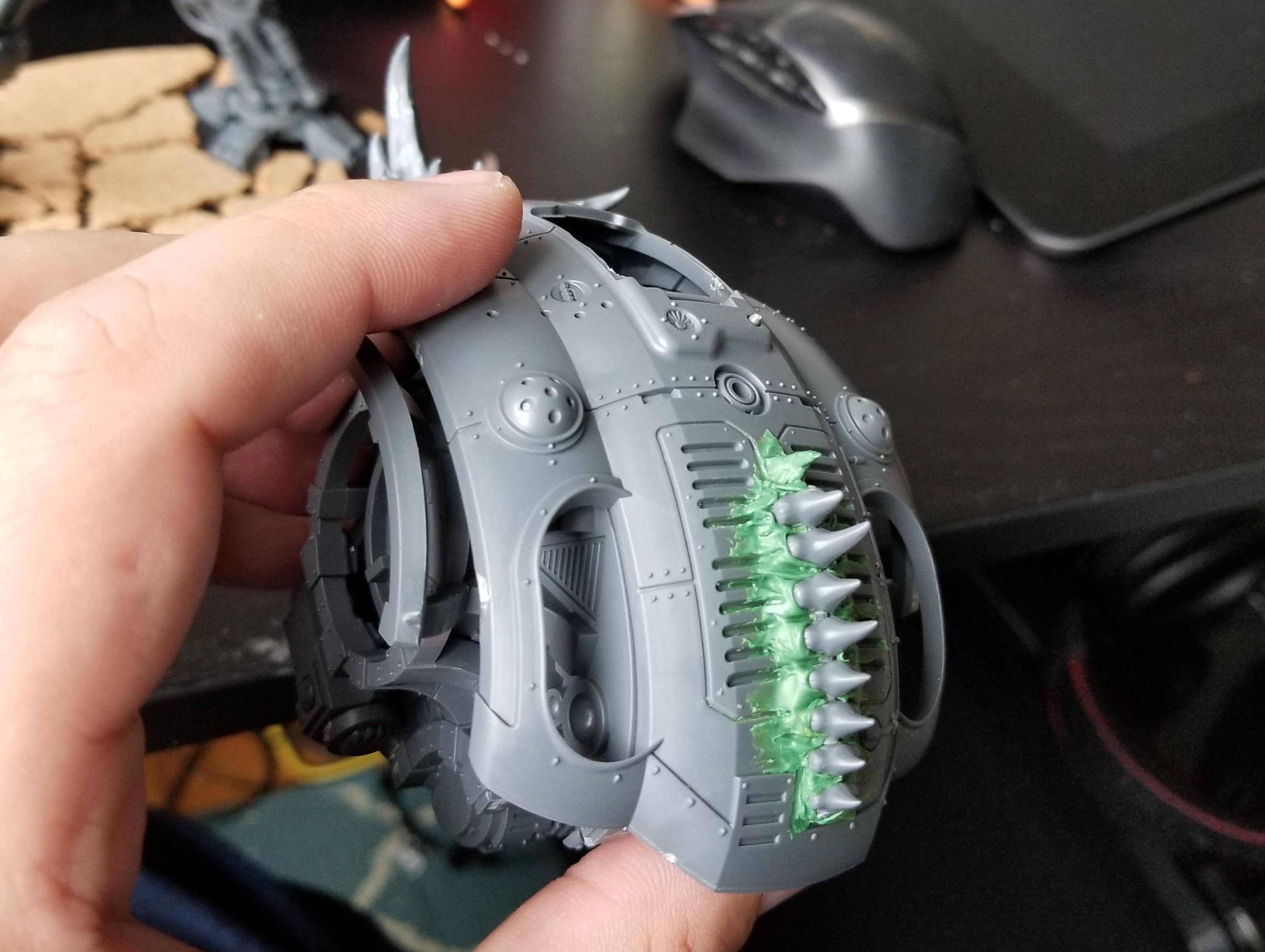 Then I used green stuff to blend those in and add ridges to the more prominent parts. This makes them look more spiny and organic, and also helps blend them into the armor.