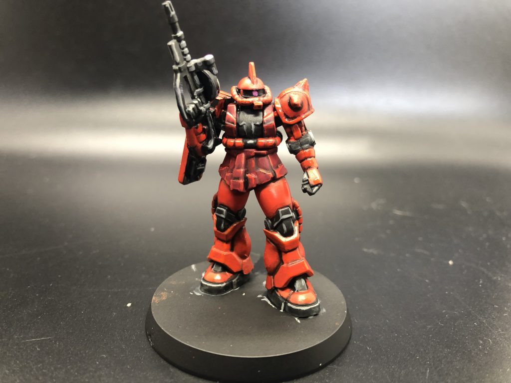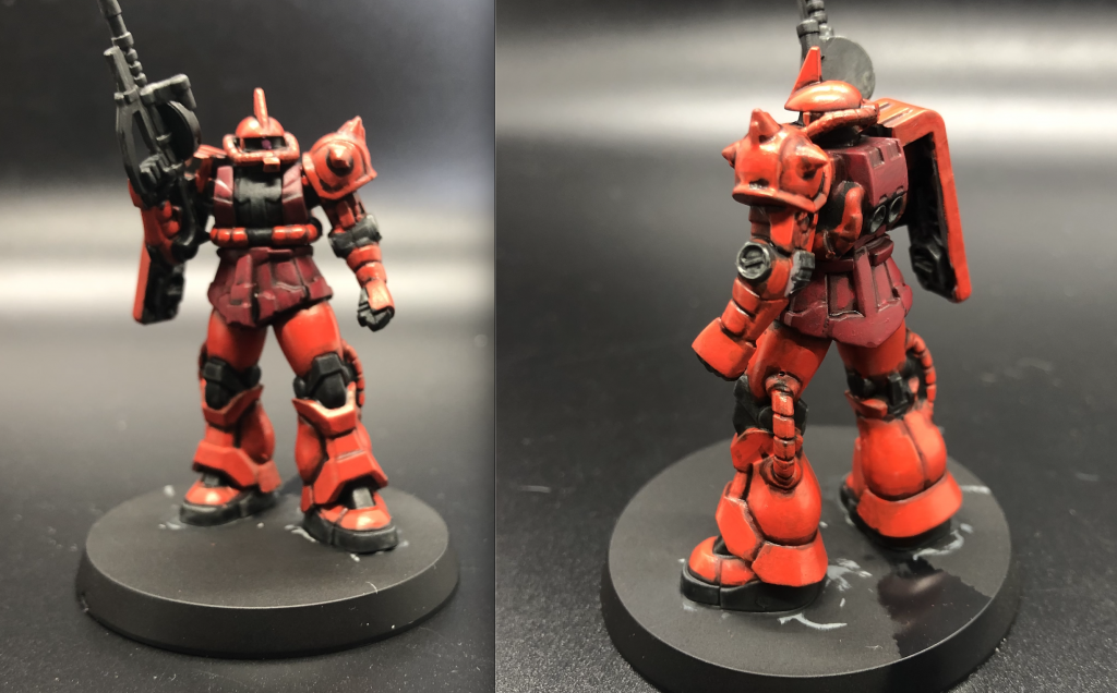 Char's Zaku, basecoated and washed and cleaned up a bit and highlit