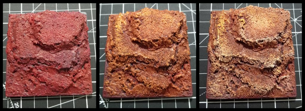 Step 1: I used a deep brown-red to basecoast the entire base. I used a custom blend of red and brown, adjusted to taste but you could get away with either GW's