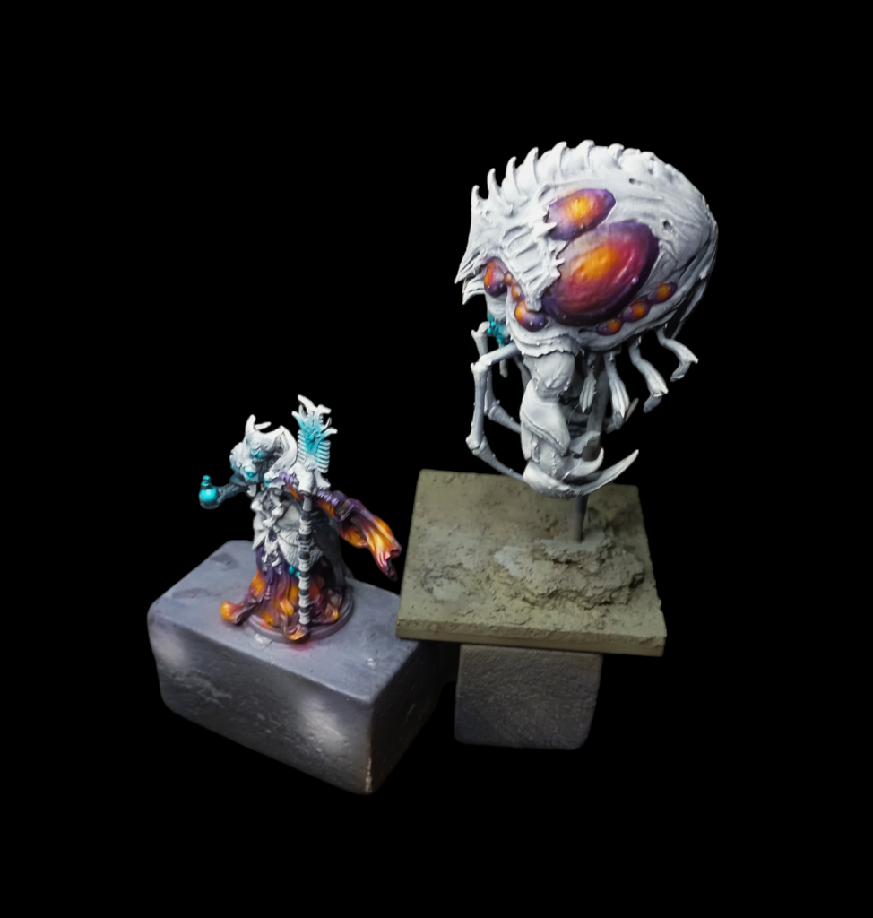 extremely limited amount of actual classical brushwork required. This method requires a little bit of practice with an airbrush, but is extremely quick once you understand it and has allowed me to churn out things like fourteen stands of Force-Grown Drones in under a week of occasional effort.