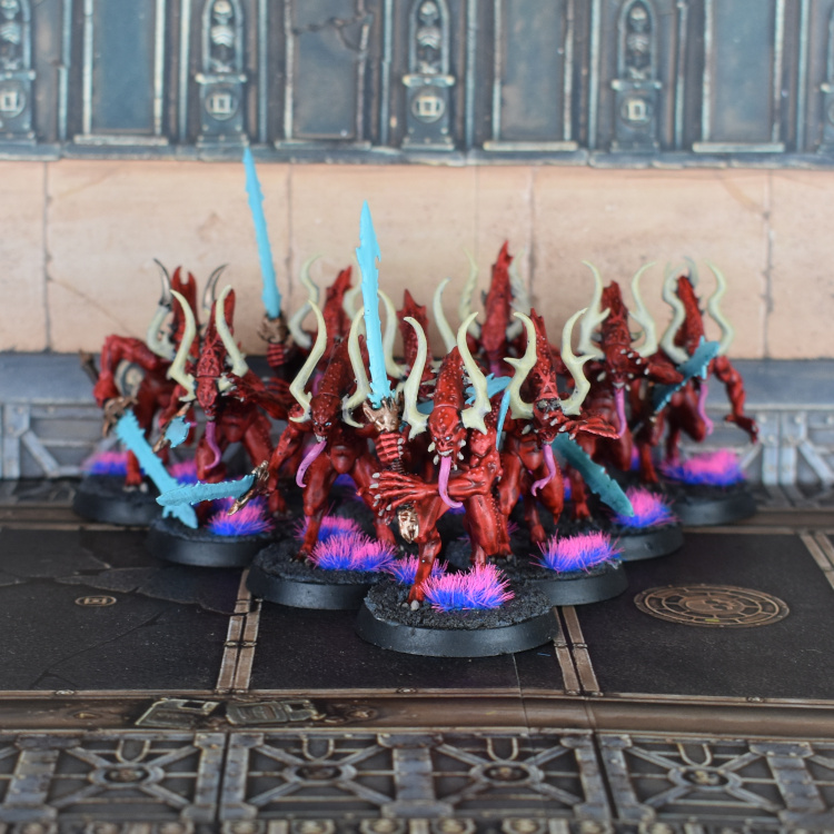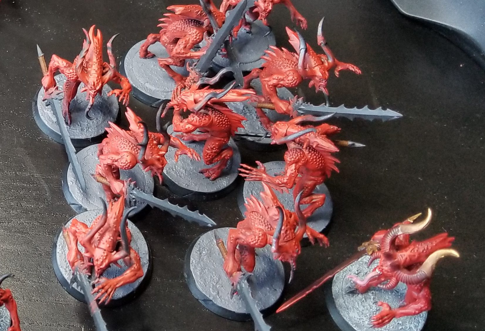My methods pre-date Contrast paint, but they're pretty quick for the most part. I tend to mostly drybrush reds on the lesser daemons, using progressively lighter shades.