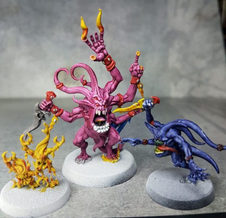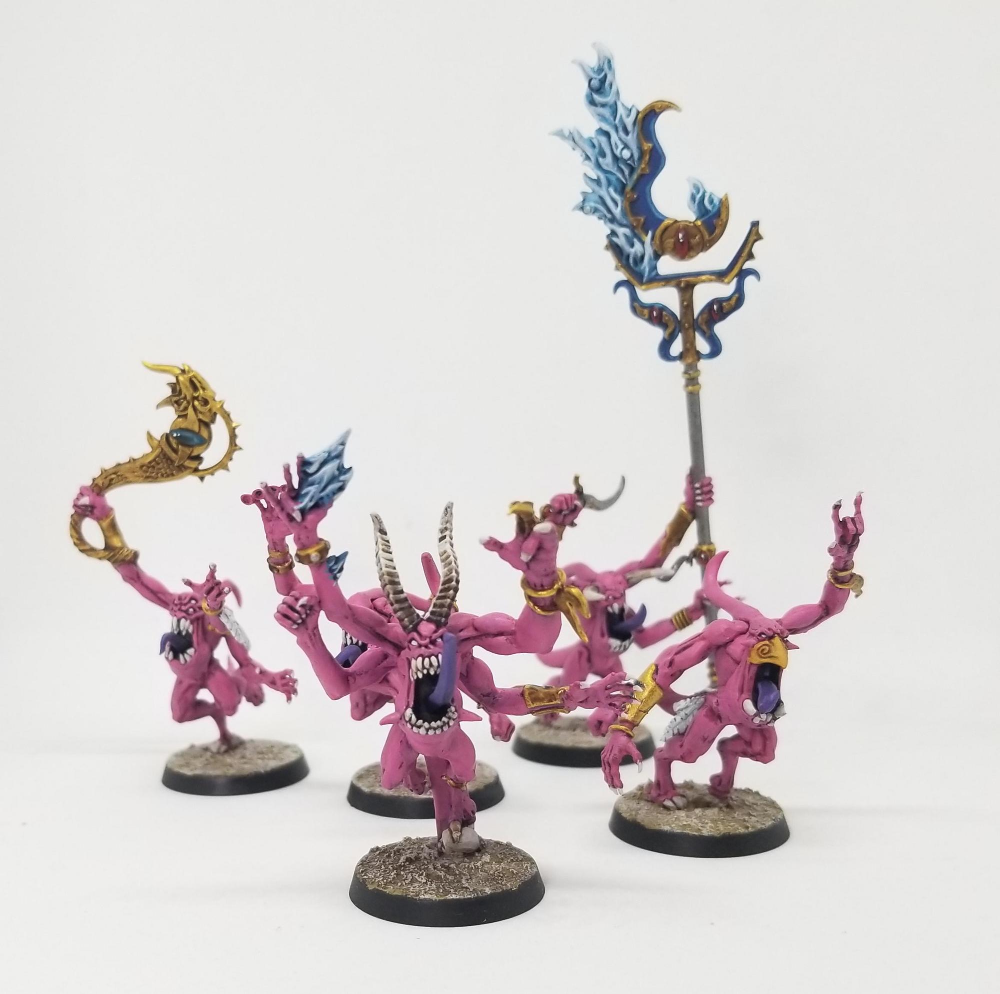 Tzeentch Daemons come in a variety of colors, though tend to use lots of pinks, blues, and flame colors. They tend to be a bright, colorful bunch, and are wonderful if you're doing transitions from red/pink to blue/purple.