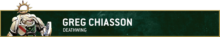 In the 41st millennium, the Dark Angels are one of the most distinct chapters of Space Marines, with striking green armor, bone-colored robes, and different color schemes for their first and second companies, the Deathwing and Ravenwing, respectively. Even their more standard marines often don bone-colored robes and cloaks, while their iconography often includes wings and swords.