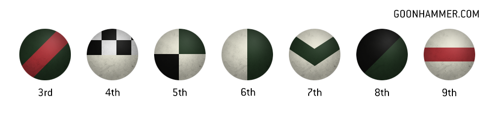 The Dark Angels use deep red markings for their battlefield role, and white gothic script for the squad number. You can find these on the Dark Angels transfer sheets (or freehand them, if you're brave). For the Ravenwing, shoulder pads are typically all black, though Black Knights typically have additional heraldry with gold markings.