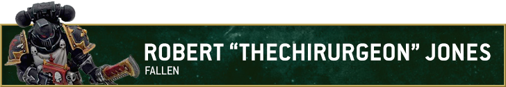 Dark Angels marines wear their company markings on their left kneepad. Deathwing marines instead use their left kneepad for squad and personal heraldry, often sporting designs with some special significance to the chapter and its history.