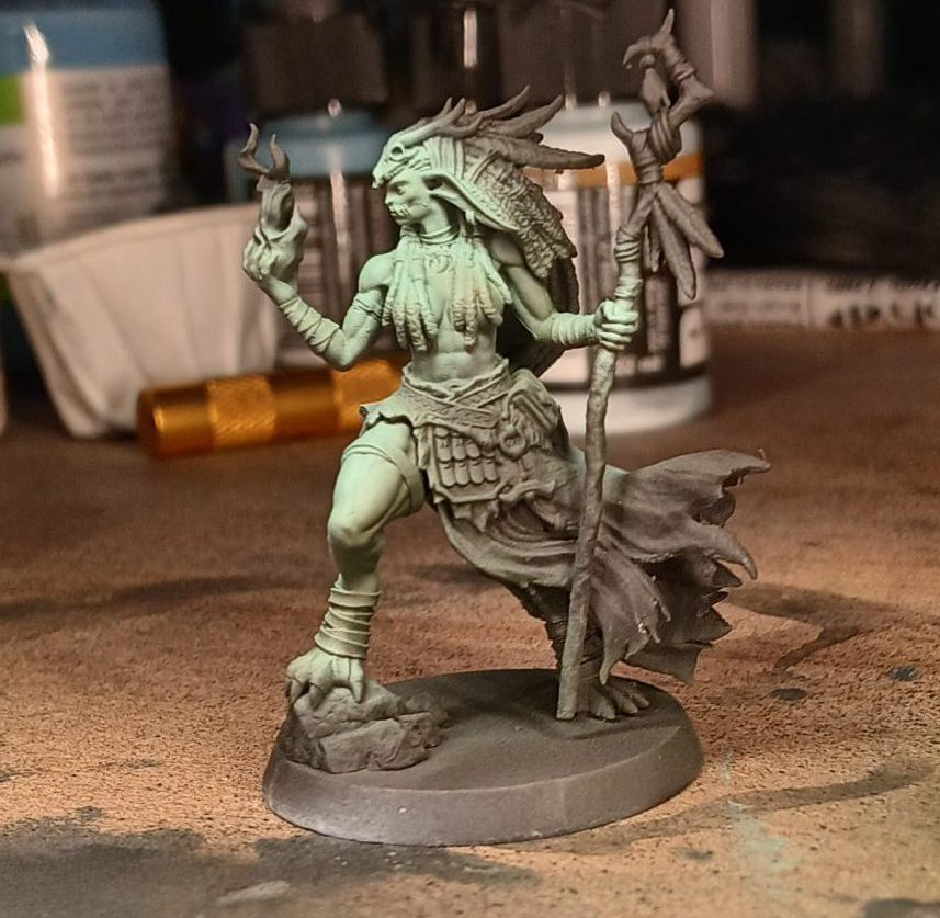 The shamaness has a dreadlocked hairstyle, which I basecoat with ProAcryl