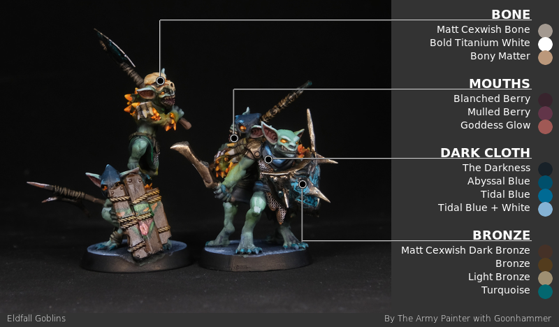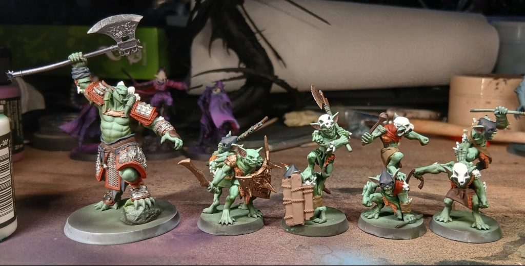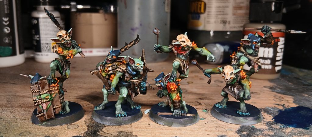 For the clothes of little goblins I use a variety of dark colours - I paint the hoods with Army Painter Fanatic