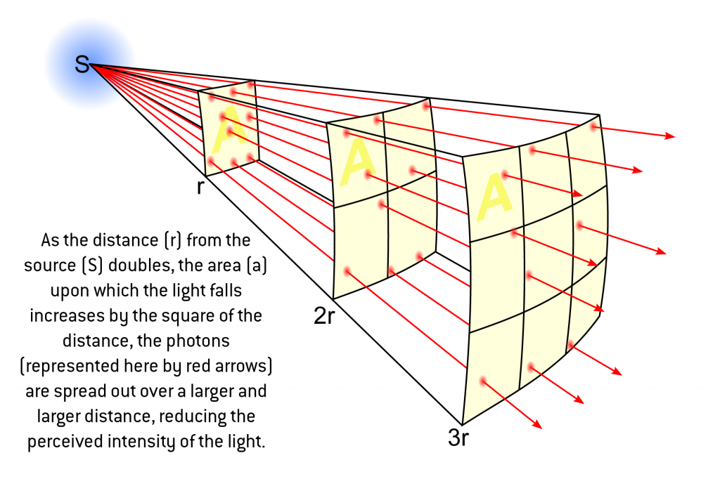 When painting OSL, it's important to check whether you can draw a straight line between the source of your light (the flame) and other parts of the model, if the light source can "see" a part of the model, it should reflect at least some, of the colour of the light. But that's not all; in physics, there's a principle called the Inverse Square Law, which affects whether lighting "reads" correctly or not. The basic principle is this - if you double the distance from the source, the perceived intensity of the light decreases to a quarter of the original, if you triple the distance, it decreases to a ninth of the original, and so on.