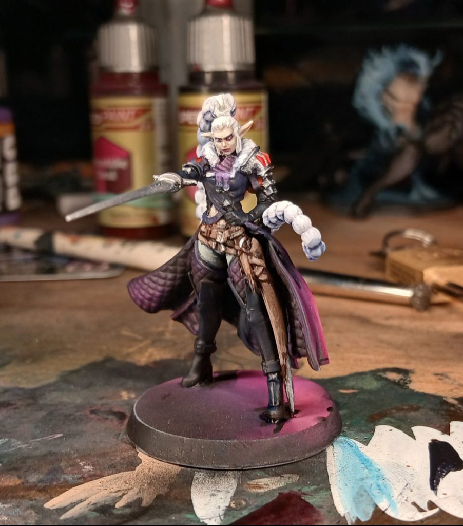 Later, I look at the official art and decide to change the colour of the coat of the Swashbuckler from pinky-purple to a deep red. To achieve this I use one of my favourite new speedpaints