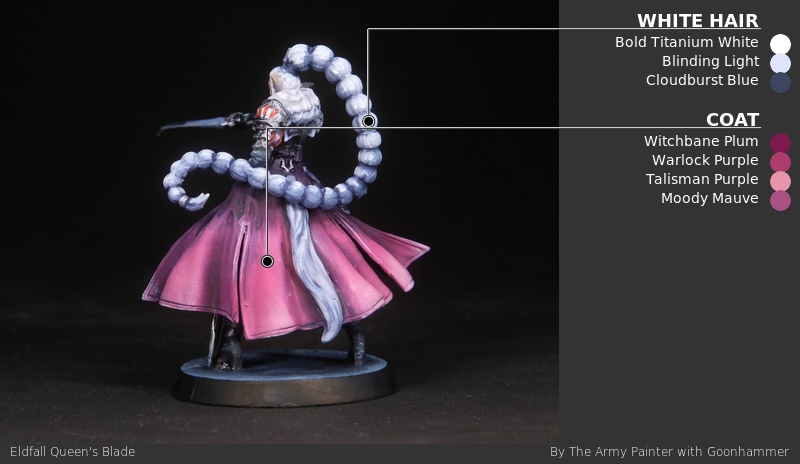 Plum (a nice magenta colour), similar to the inside of the cloak and the coat of the leader. I shade the cloak with a bit of AP SP