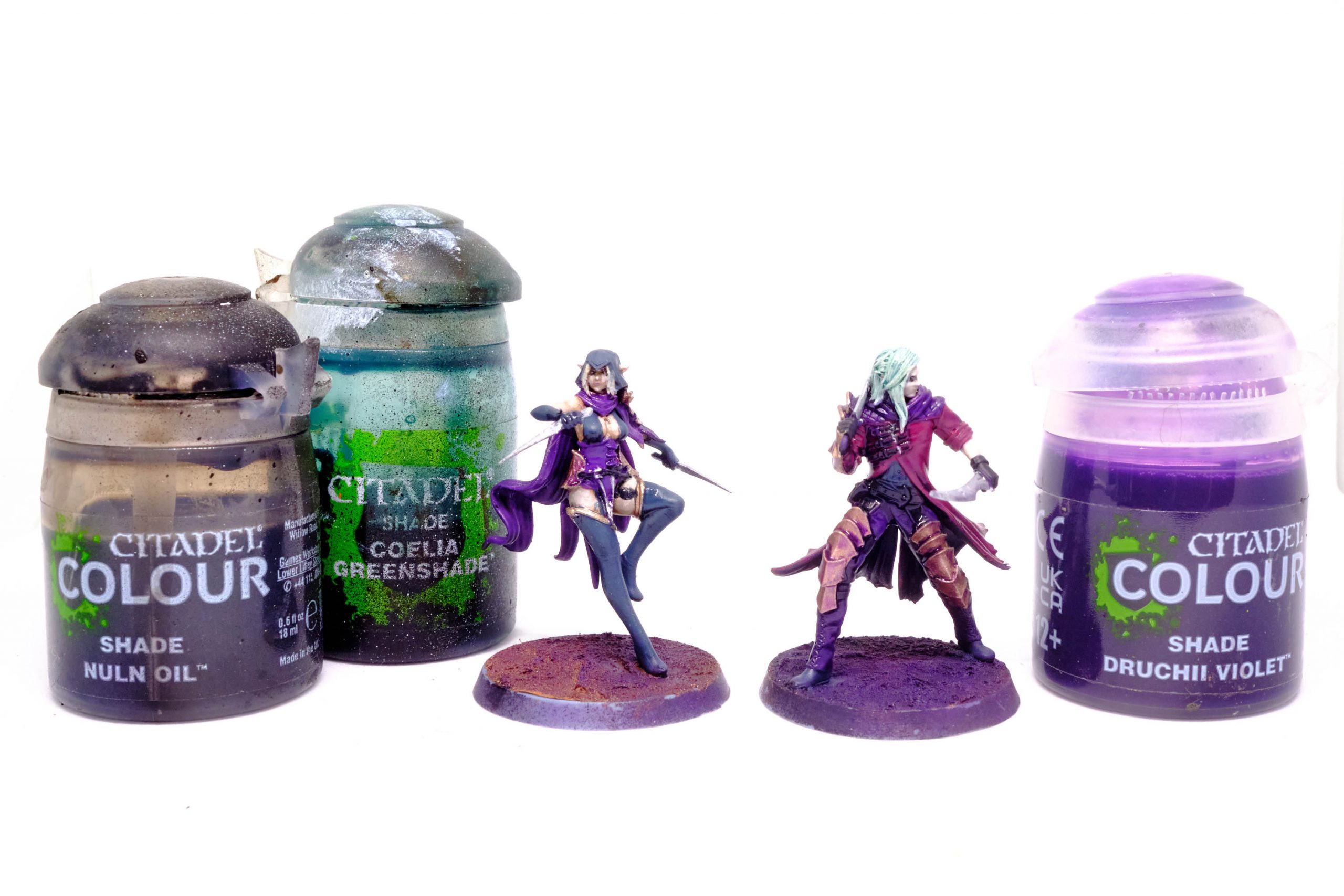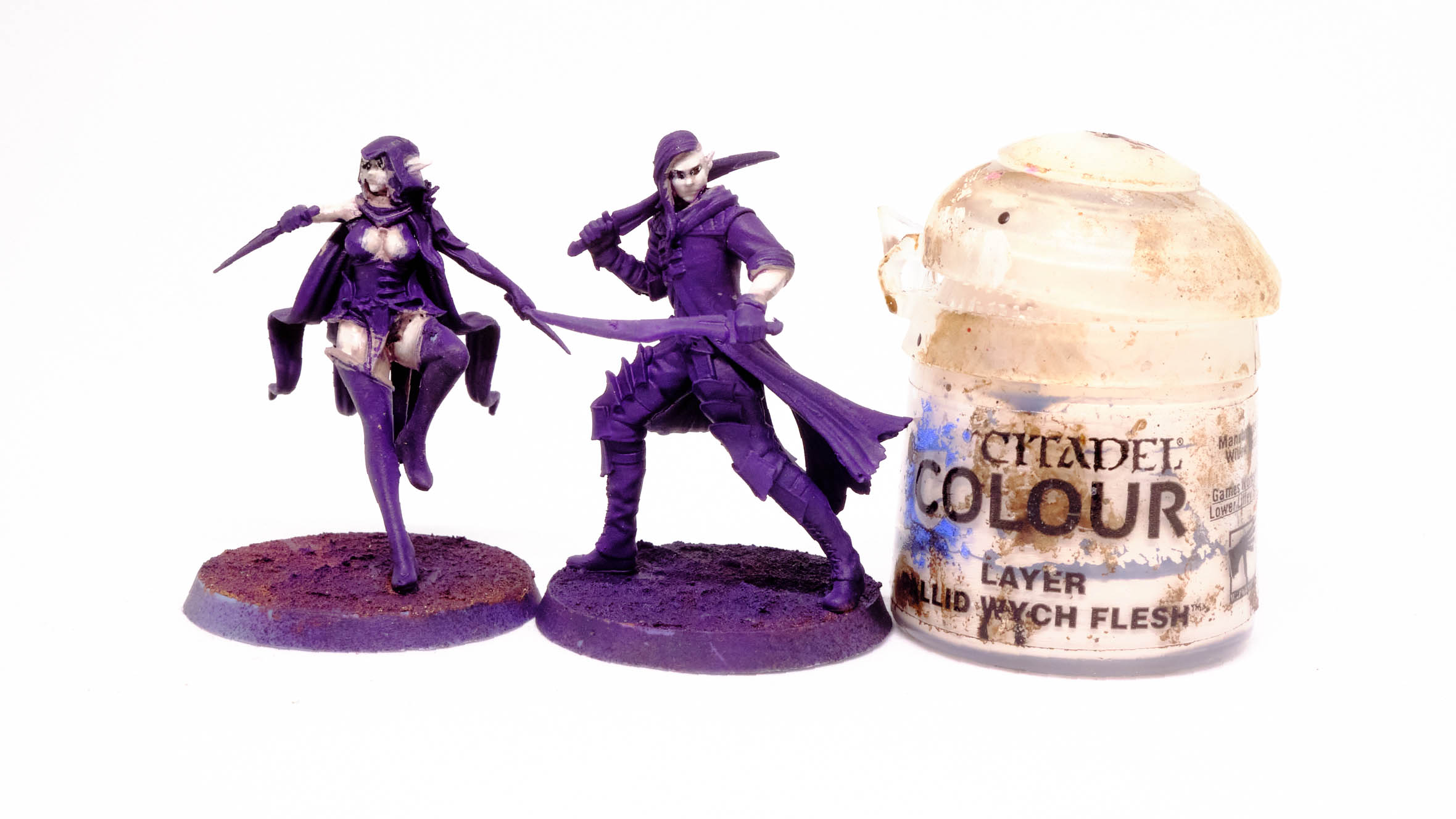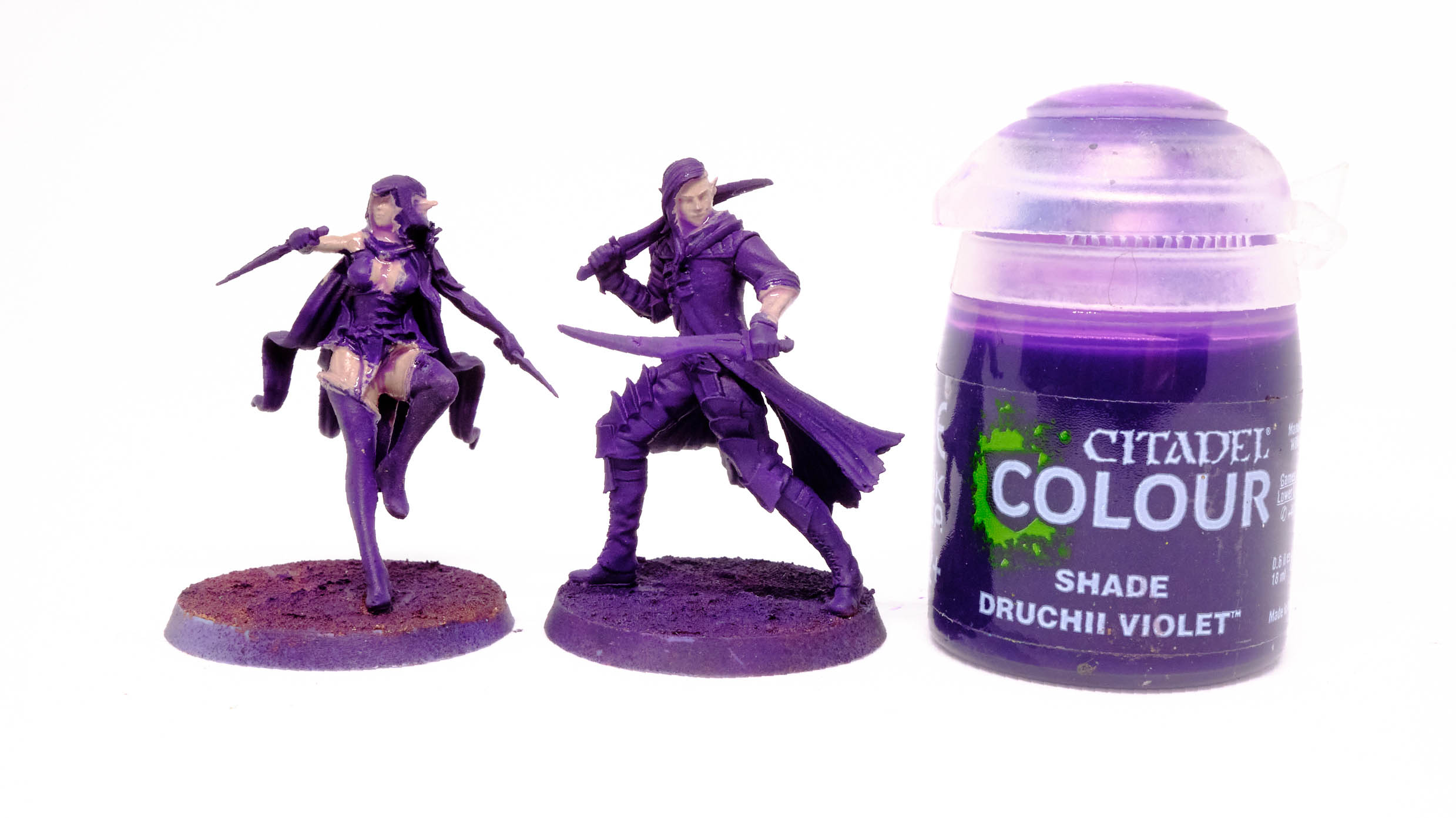 Druchii Violet rather aggressively with water, and shade the skin.