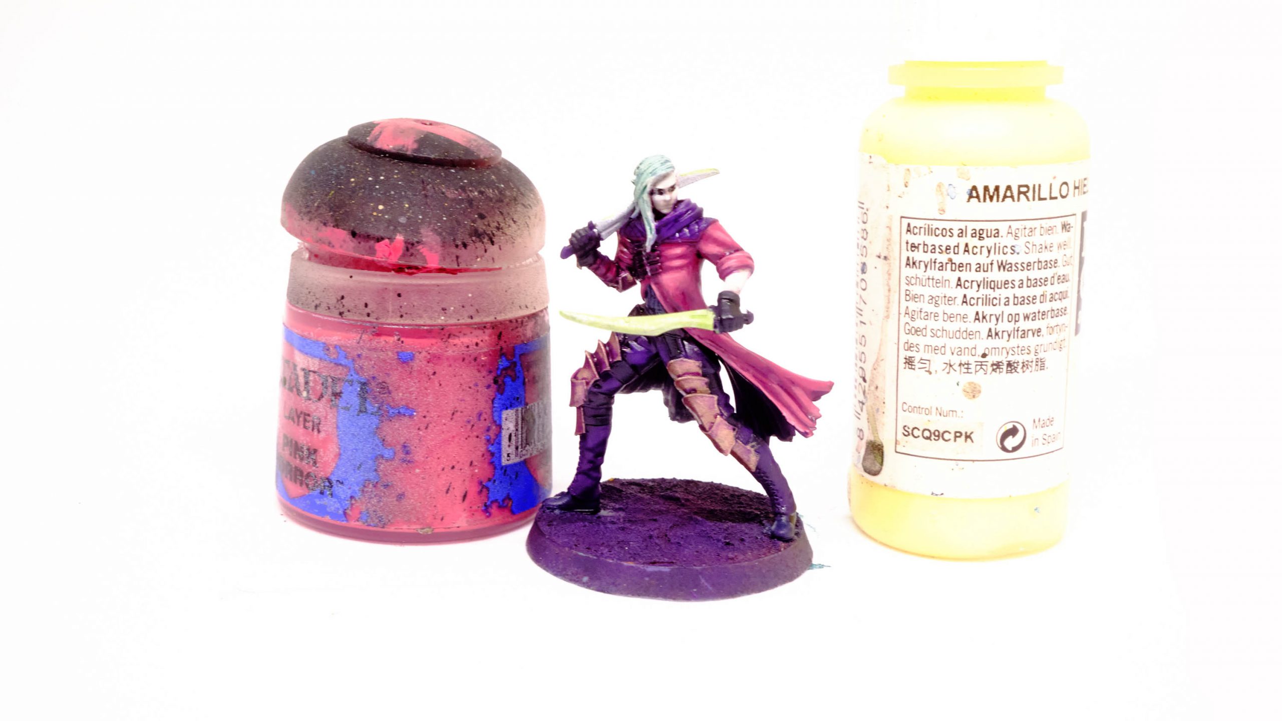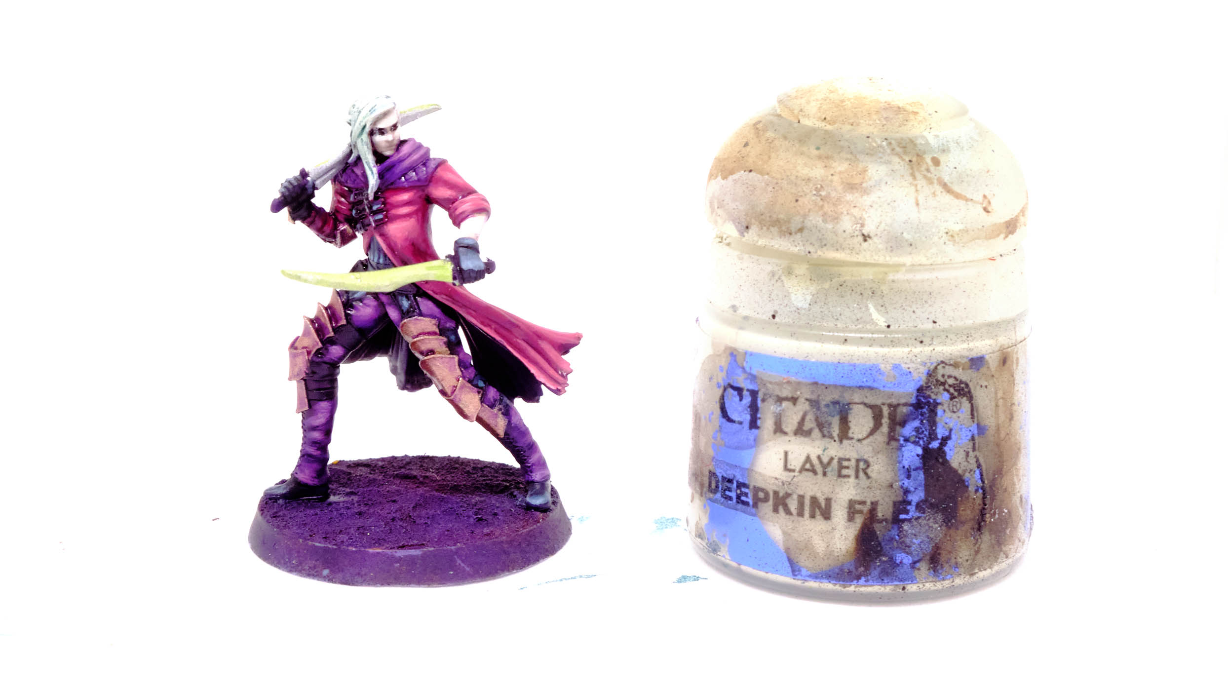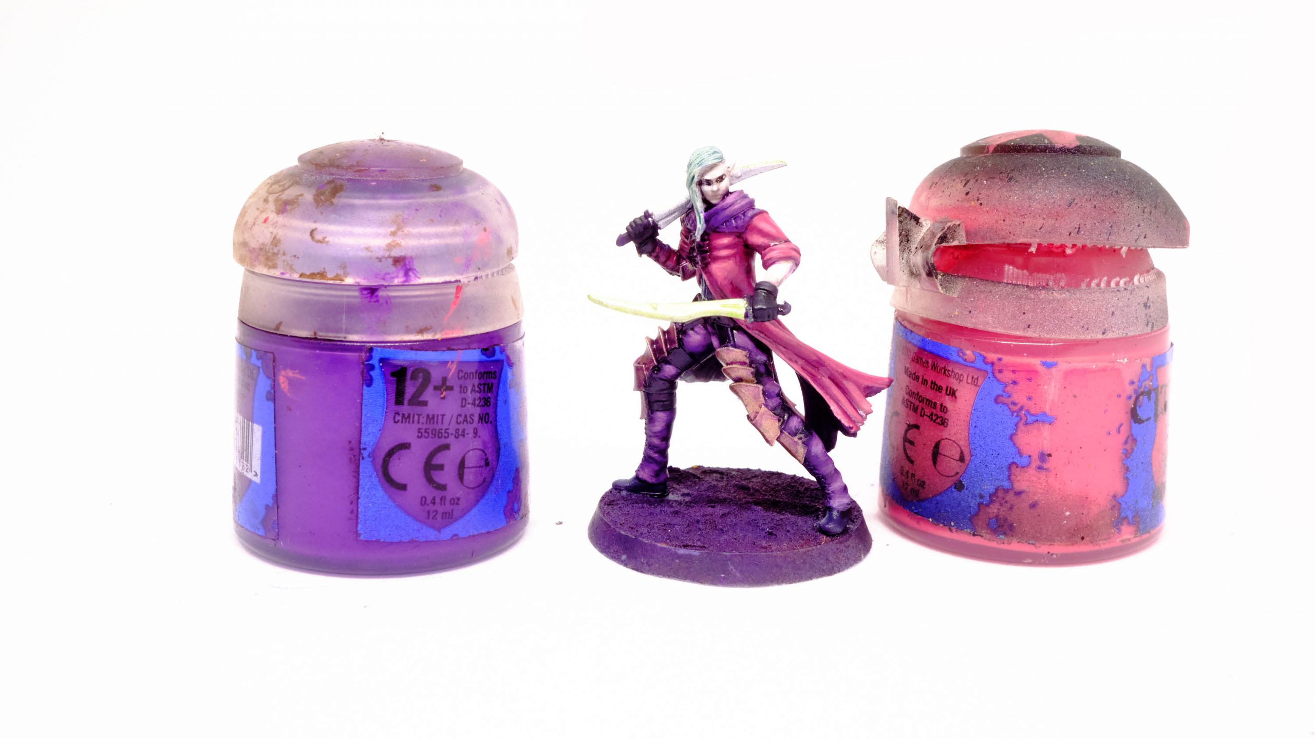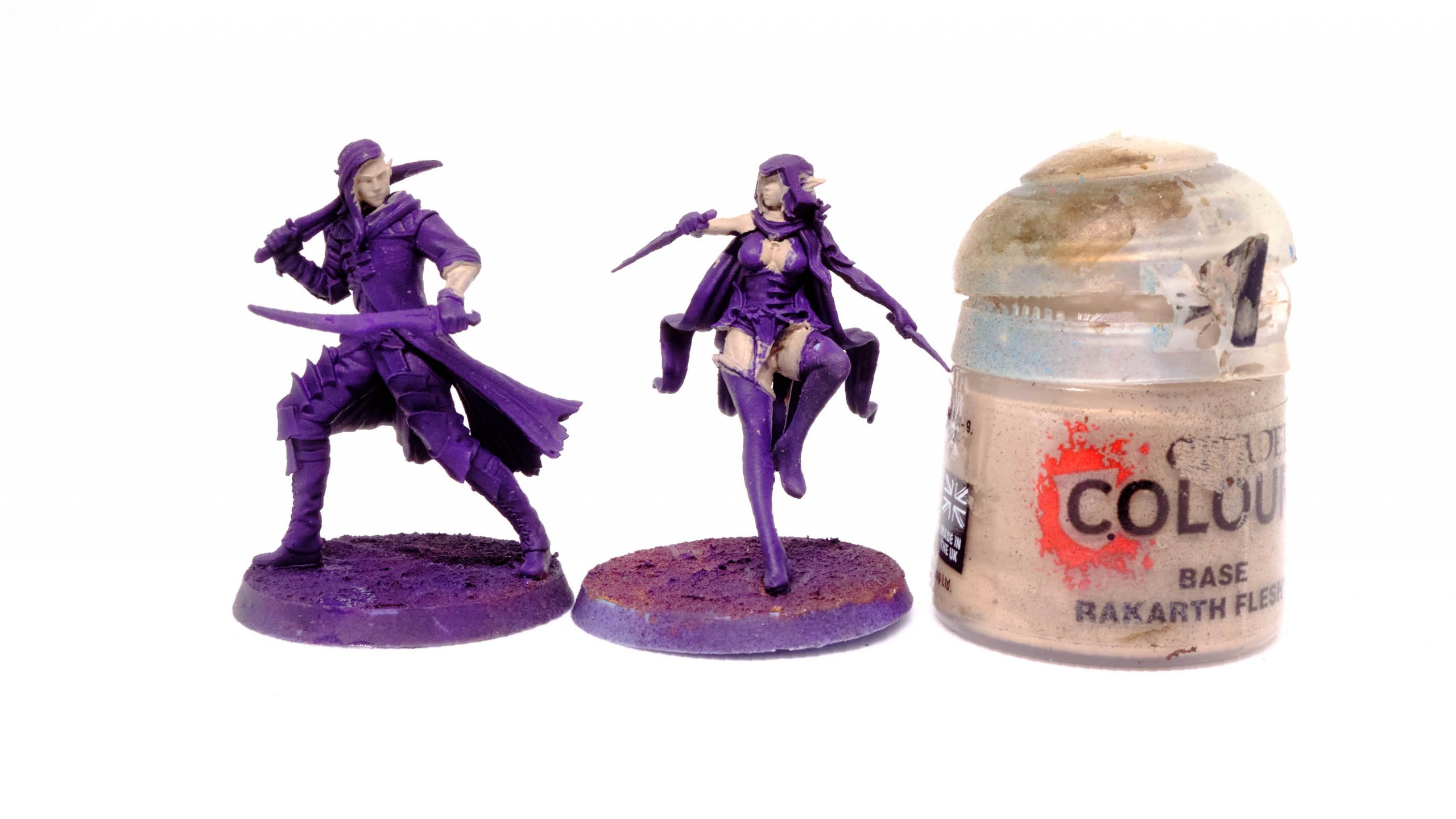 Druchii Violet rather aggressively with water, and shade the skin.