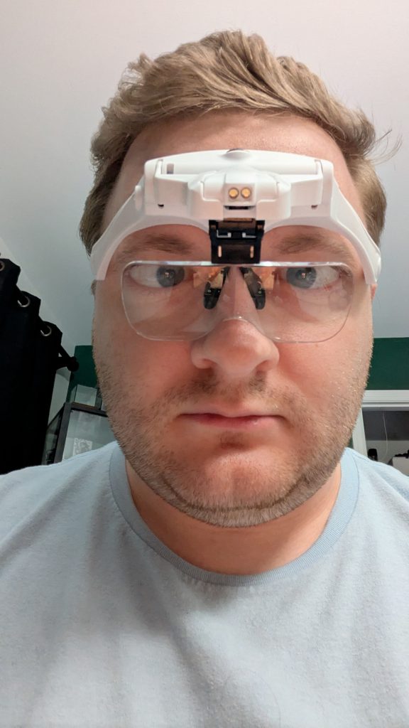 Speaking of not straining your eyes, you should invest in a cheap pair of magnifying glasses. Yes, I’m talking sexy goggs. They help immensely, especially when you’re trying to paint a face smaller than your pinky thumbnail. I started using them just for small details like faces (seriously, do you know how small some of those Kingdom Death faces are?!), but now I use them almost any time I’m painting anything more than a base coat. As it turns out, you can paint something better if you can see it better; funny how that works, isn’t it?